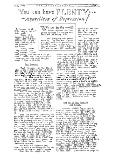 The Plain Truth - 1934 to 1954